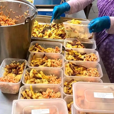 We deliver over 250 meals a week to elderly and sick people in their homes, local food banks, and schools for children who have no food at home to take a meal home with them after school.